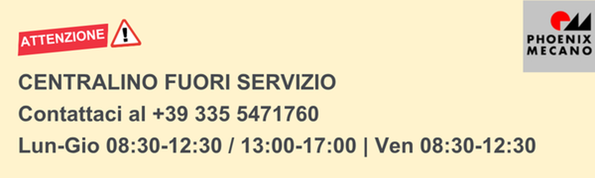 Potete contattarci al numero mobile +39 335 5471760 negli orari di ufficio: