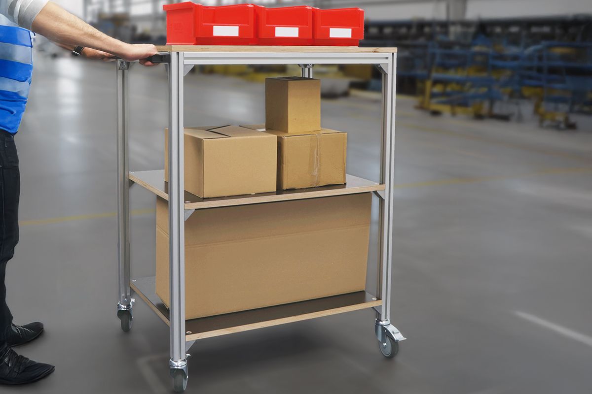 De transportkar Eco zorgt voor efficiënt en ergonomisch transport van goederen binnen productie- en assemblage faciliteiten.
